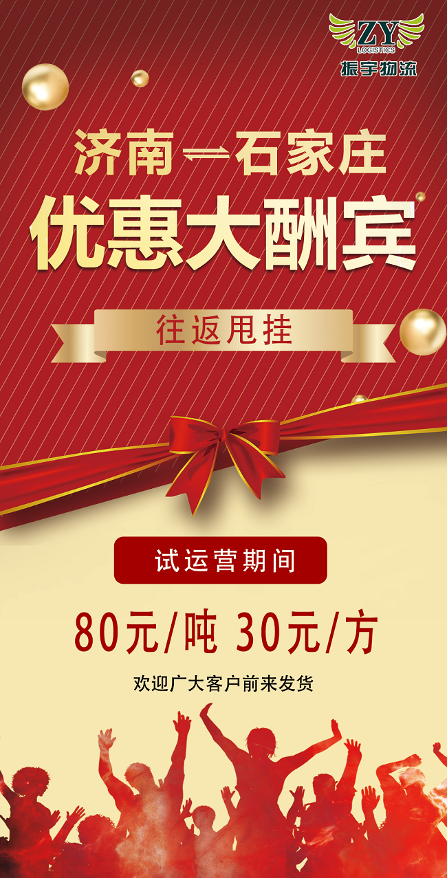 熱烈祝賀振宇物流9.13號(hào)開通濟(jì)南到石家莊專線!往返甩掛,優(yōu)惠多多!