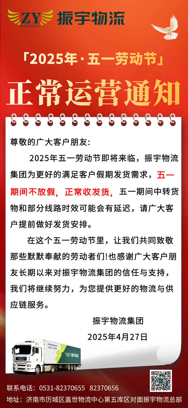 振宇物流集團丨五一期間正常運營通知