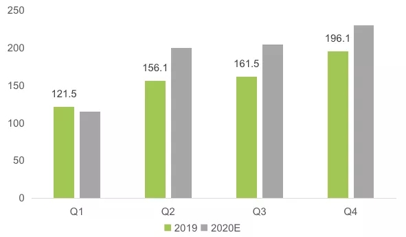 受新型冠狀病毒疫情影響,多地出臺(tái)了交通管制和人員限行的措施,短期對(duì)快遞業(yè)務(wù)發(fā)展有較大影響,主要體現(xiàn)在一季度數(shù)據(jù)。假定疫情在2月底得到有效控制的情況下,預(yù)計(jì)一季度快遞業(yè)務(wù)量120億件左右,總體與上年基本持平。經(jīng)歷3月恢復(fù)調(diào)整后,市場(chǎng)需求將加速釋放,二季度快遞業(yè)迎來(lái)速度提升期,增速將明顯加快,預(yù)計(jì)該季度業(yè)務(wù)量規(guī)模為200億件左右,增速將重回30%以上。下半年將恢復(fù)常態(tài)運(yùn)行,預(yù)計(jì)三季度和四季度快遞業(yè)務(wù)量規(guī)模分別為200億件和230億件左右,全年快遞業(yè)務(wù)量規(guī)模將超過(guò)750億件??爝f價(jià)格觸底反彈,預(yù)計(jì)全年業(yè)務(wù)收入增速將首次超過(guò)業(yè)務(wù)量增速。