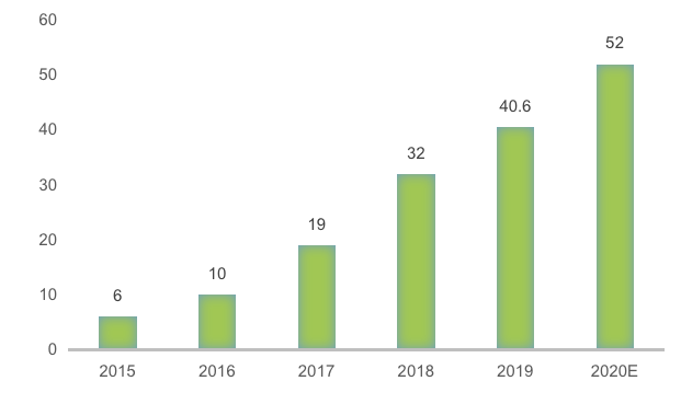 圖3 2015—2020年智能快件箱增長(zhǎng)情況(單位:萬(wàn)組)