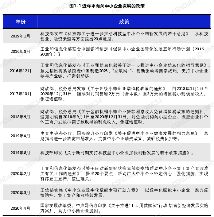 自2009年國務(wù)院出臺(tái)《國務(wù)院關(guān)于進(jìn)一步促進(jìn)中小企業(yè)發(fā)展的若干意見》,提出要完善中小企業(yè)政策法律體系、緩解融資困難后,中央又出臺(tái)多個(gè)政策助力中小企業(yè)發(fā)展。