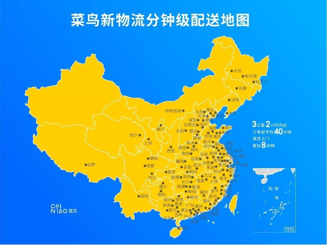 據(jù)介紹,618前夕,菜鳥(niǎo)門(mén)店發(fā)貨再下70城,目前已覆蓋全國(guó)30省100多個(gè)城市。作為新物流的首個(gè)618,盒馬30分鐘達(dá)、天貓超市1小時(shí)達(dá)、菜鳥(niǎo)“門(mén)店發(fā)貨”2小時(shí)達(dá)都是大促的標(biāo)準(zhǔn)服務(wù),分鐘級(jí)配送已經(jīng)涵蓋生鮮、美妝、母嬰、快消、服飾、醫(yī)藥等多個(gè)品類(lèi),并從一二線城市向三四線城市拓展。