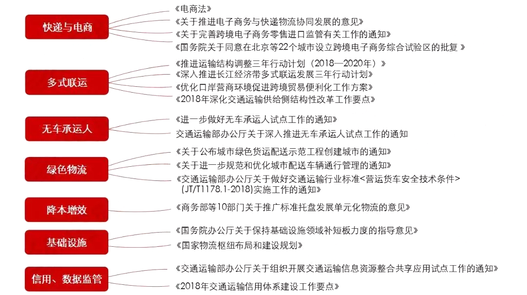 現(xiàn)在,國(guó)家關(guān)于物流的支撐政策不勝枚舉,以下梳理了2018年來(lái)關(guān)于促進(jìn)物流行業(yè)發(fā)展的國(guó)家政策。這些政策、指導(dǎo)意見(jiàn)從不同的角度,為物流業(yè)未來(lái)的發(fā)展指明了方向。對(duì)于物流企業(yè)來(lái)說(shuō),準(zhǔn)確地把握風(fēng)向,順應(yīng)大環(huán)境,才能找準(zhǔn)發(fā)力點(diǎn)。